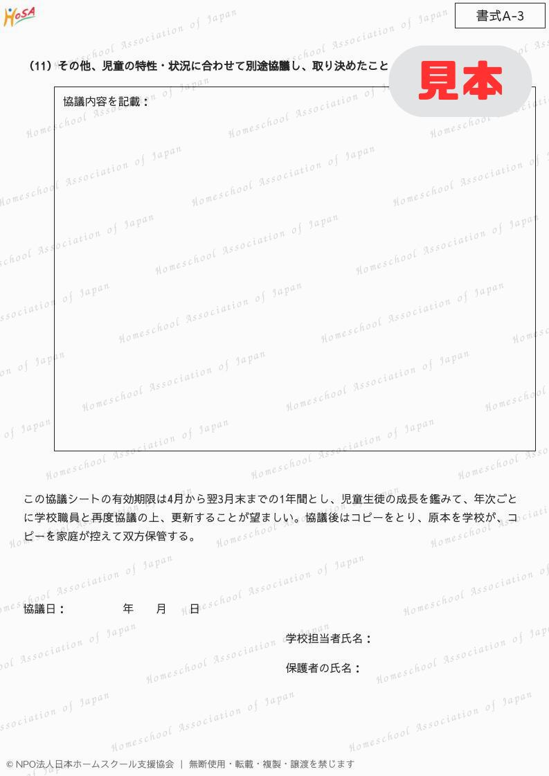 ・ホームスクール開始後の成績や出席の扱い方についての希望シートの作成